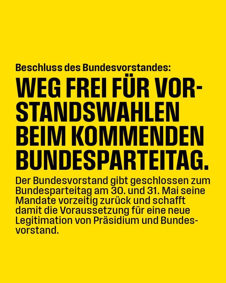 Die FDP steht vor existenziellen Herausforderungen. Dafür braucht die Parteiführung eine neue Legitimation. Daher hat der Bundesvorstand beschlossen, zum Bundesparteitag seine Mandate zur Verfügung zu stellen, um mit einer Neuwahl eine Richtungsentscheidung über die Zukunft der FDP zu ermöglichen.